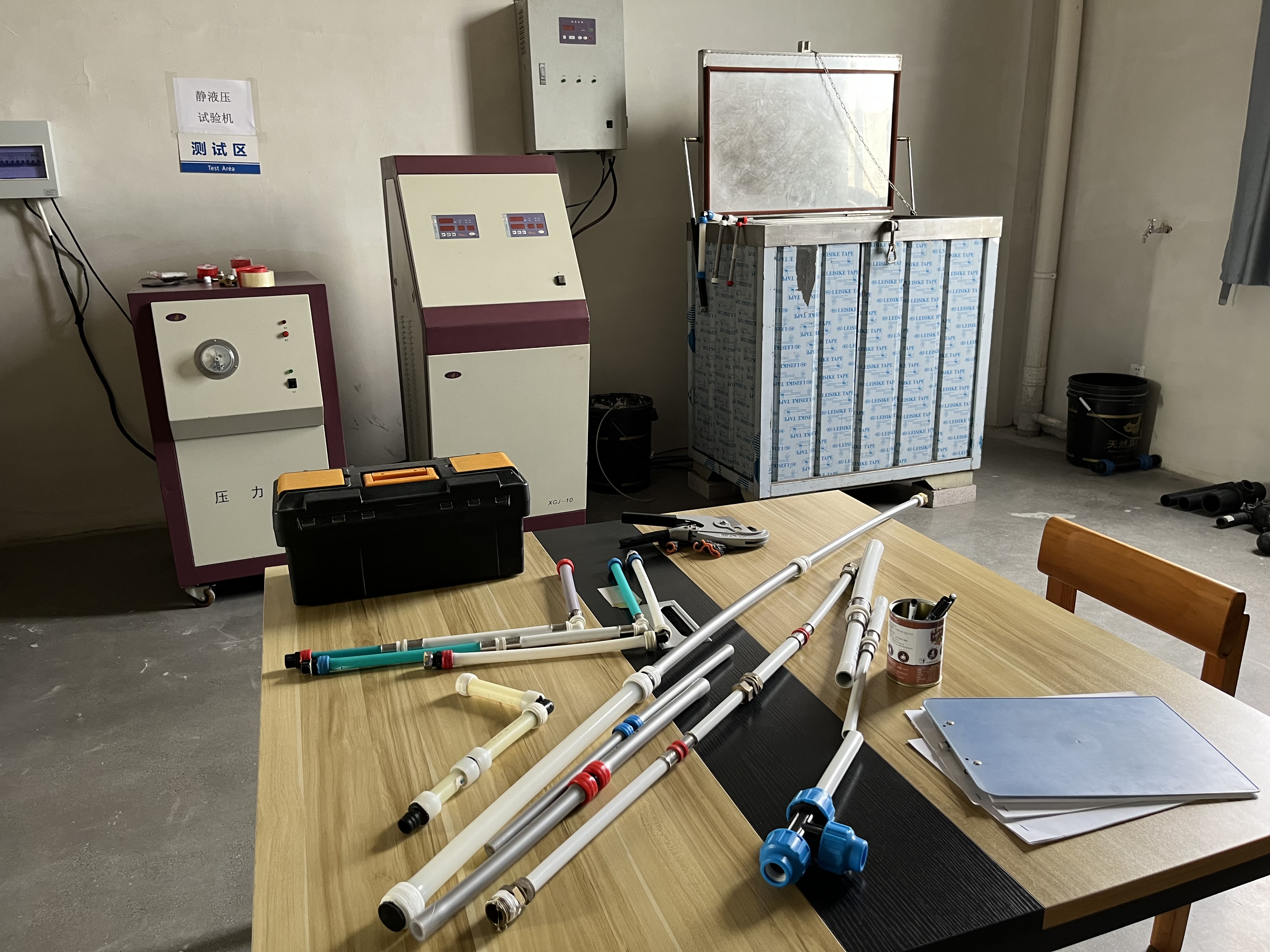 Assessing the pull strength and quality of our PE-Xa pipes.